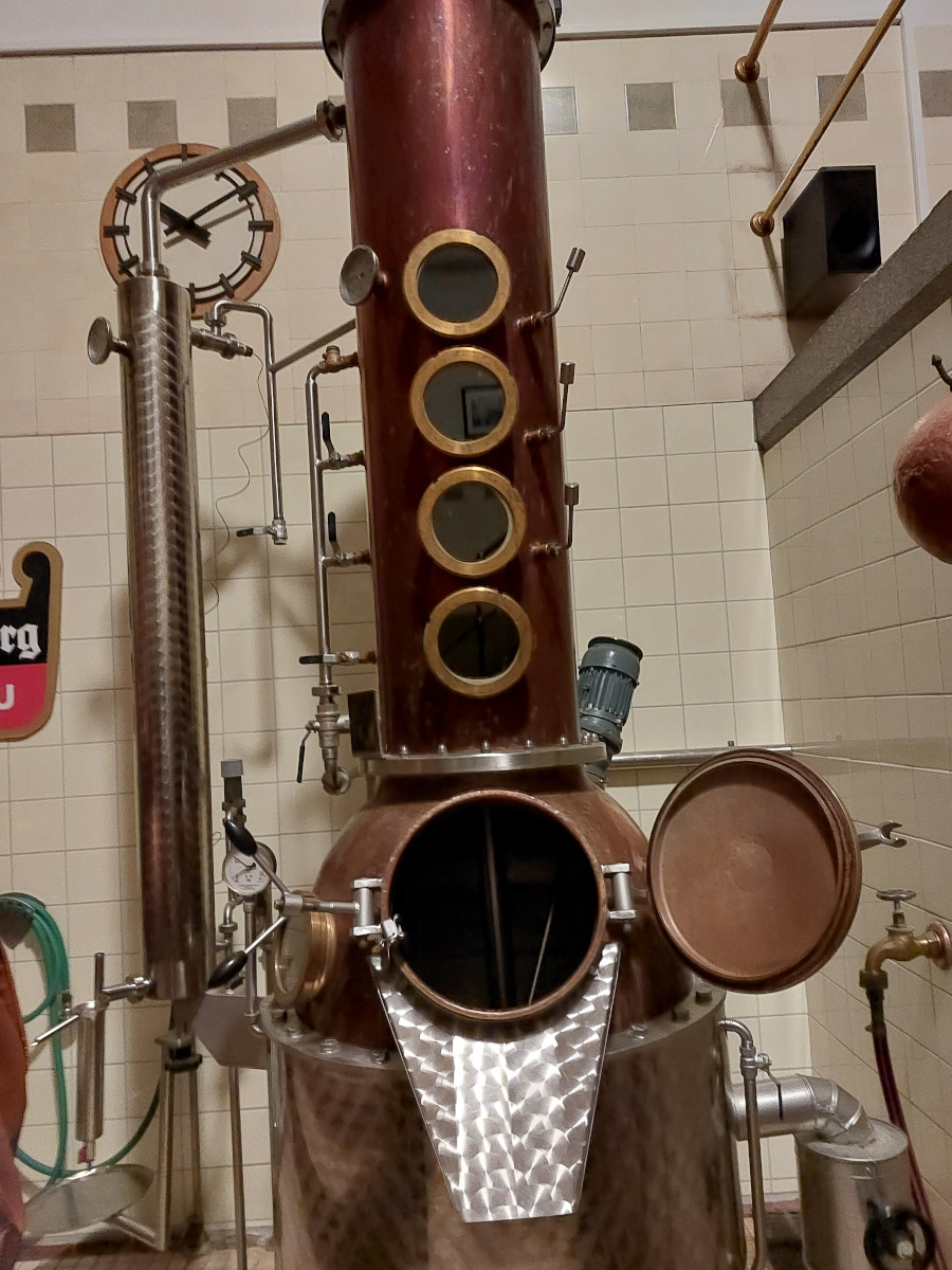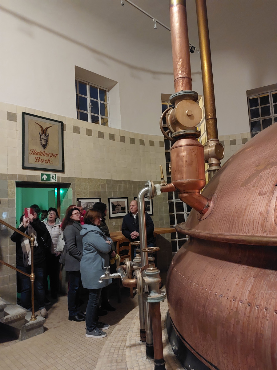 Wir bekamen dann eine kurzweilige und informative Brauereiführung in der Brauerei Hacklberg. Besonders gefallen hat meinen Strickdamen das alte Sudhaus - ist nicht mehr in Betrieb, aber sehr geschmackvoll herausgeputzt - mit der noch immer aktiven Schnapsbrennerei.