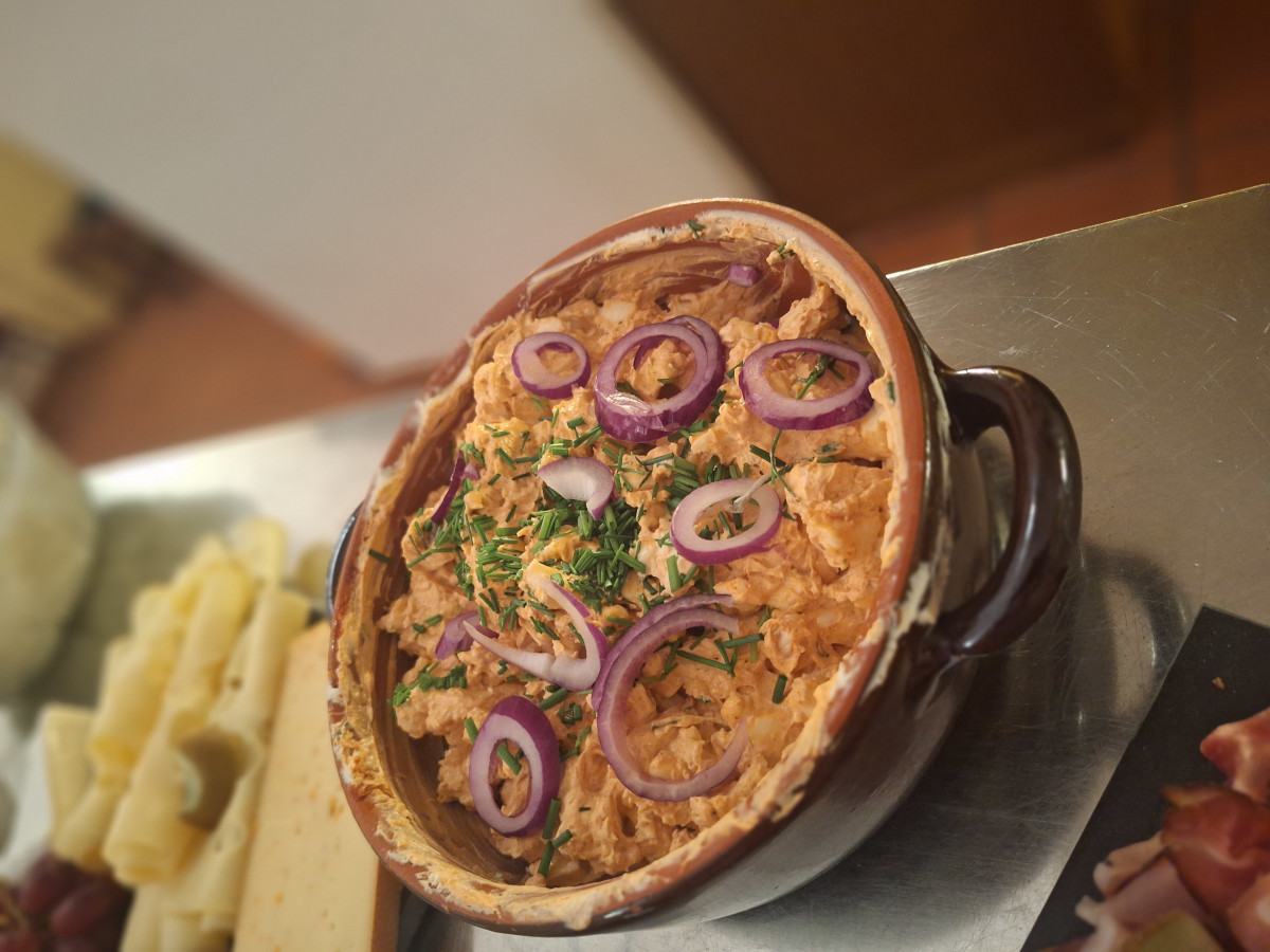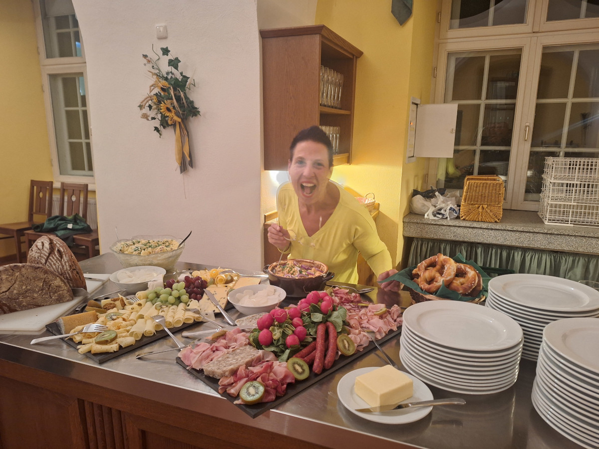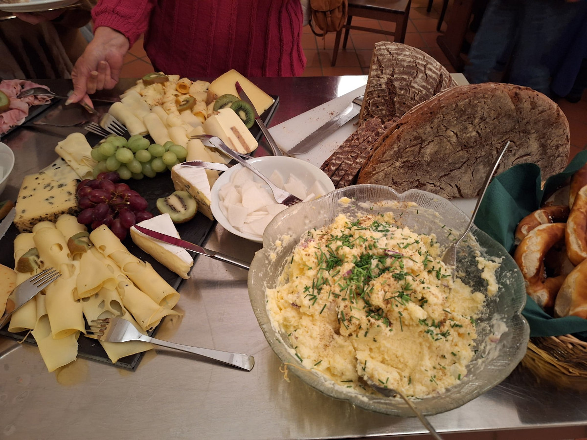 Nach dem Rundgang durch die Brauerei trafen wir uns im Badhaus (das ist unser Stricktreff - Treffpunkt, den wir 1x im Monat nutzen können) wo bereits eine bayrische Brotzeit auf die hungrigen Mäuler wartete.