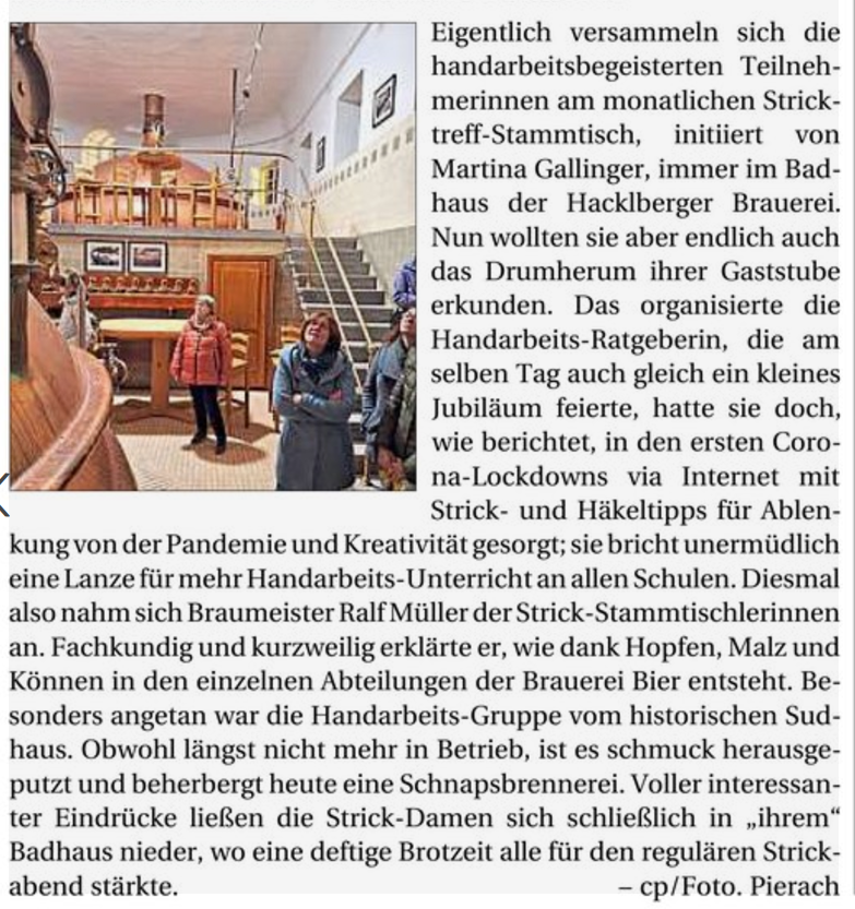 Im Frühjahr kam mal im Rahmen eines Strickteffs die Idee einer Brauereiführung ins Gespräch, die ich dann zu meinem 4-jährigem MWM Bestehen umsetzen wollte.