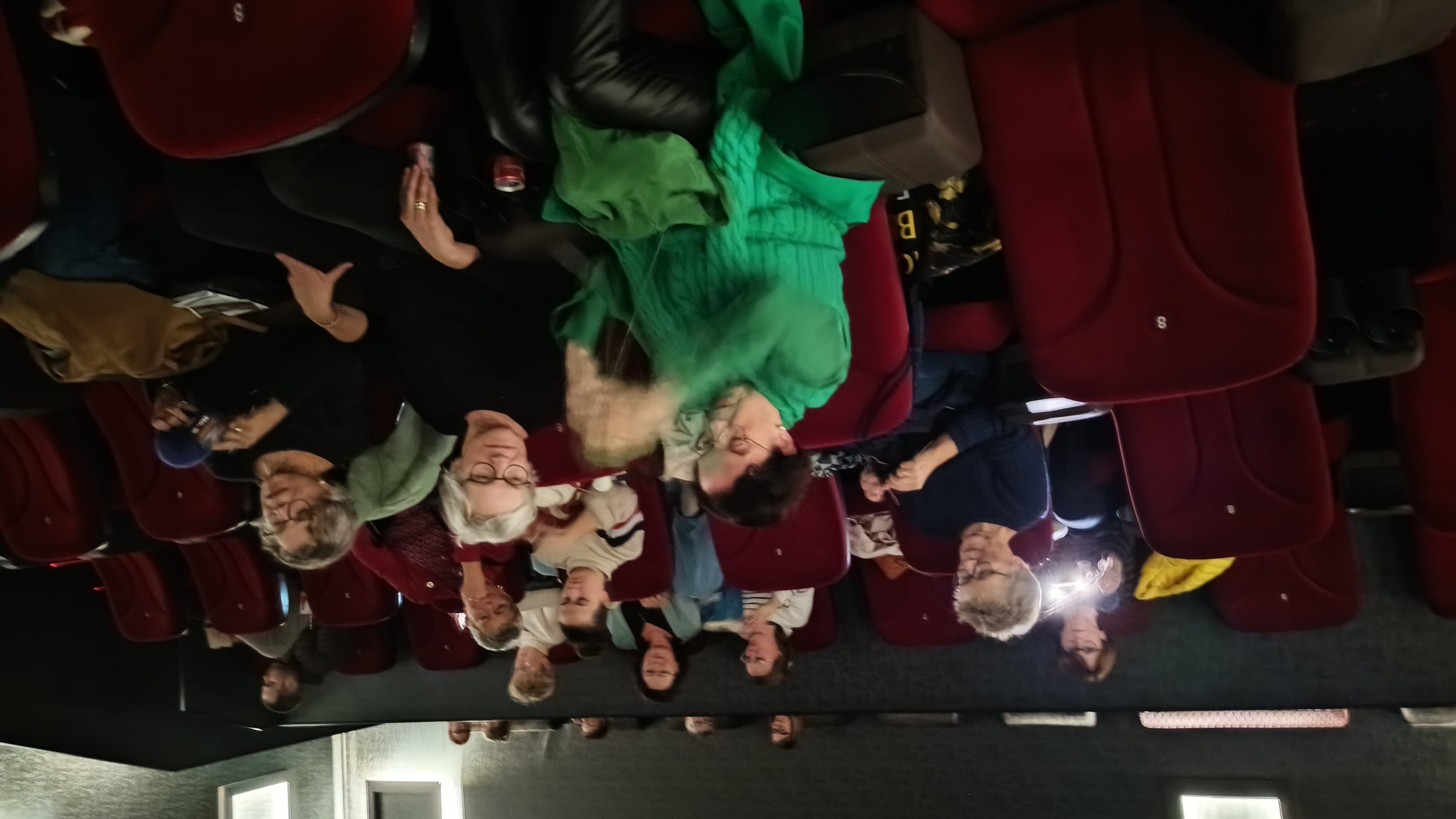 Die Filme werden zwar mit angepasster Beleuchtung ausgestrahlt, aber es wäre sinnvoll, wenn ihr euch eine Lampe zum anstecken mitnehmt, damit Ihr nicht im Dunkeln stricken müsst.