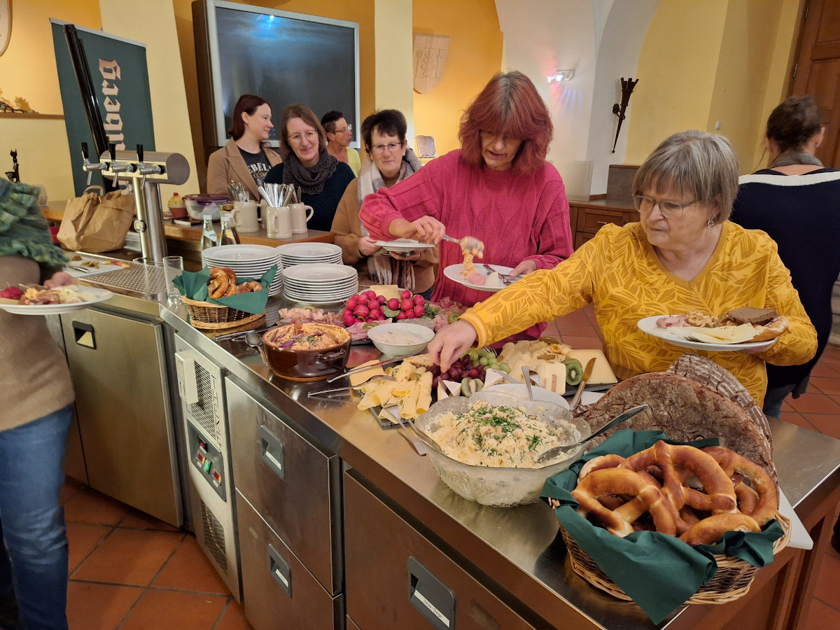 Nach dem Rundgang durch die Brauerei trafen wir uns im Badhaus (das ist unser Stricktreff - Treffpunkt, den wir 1x im Monat nutzen können) wo bereits eine bayrische Brotzeit auf die hungrigen Mäuler wartete.